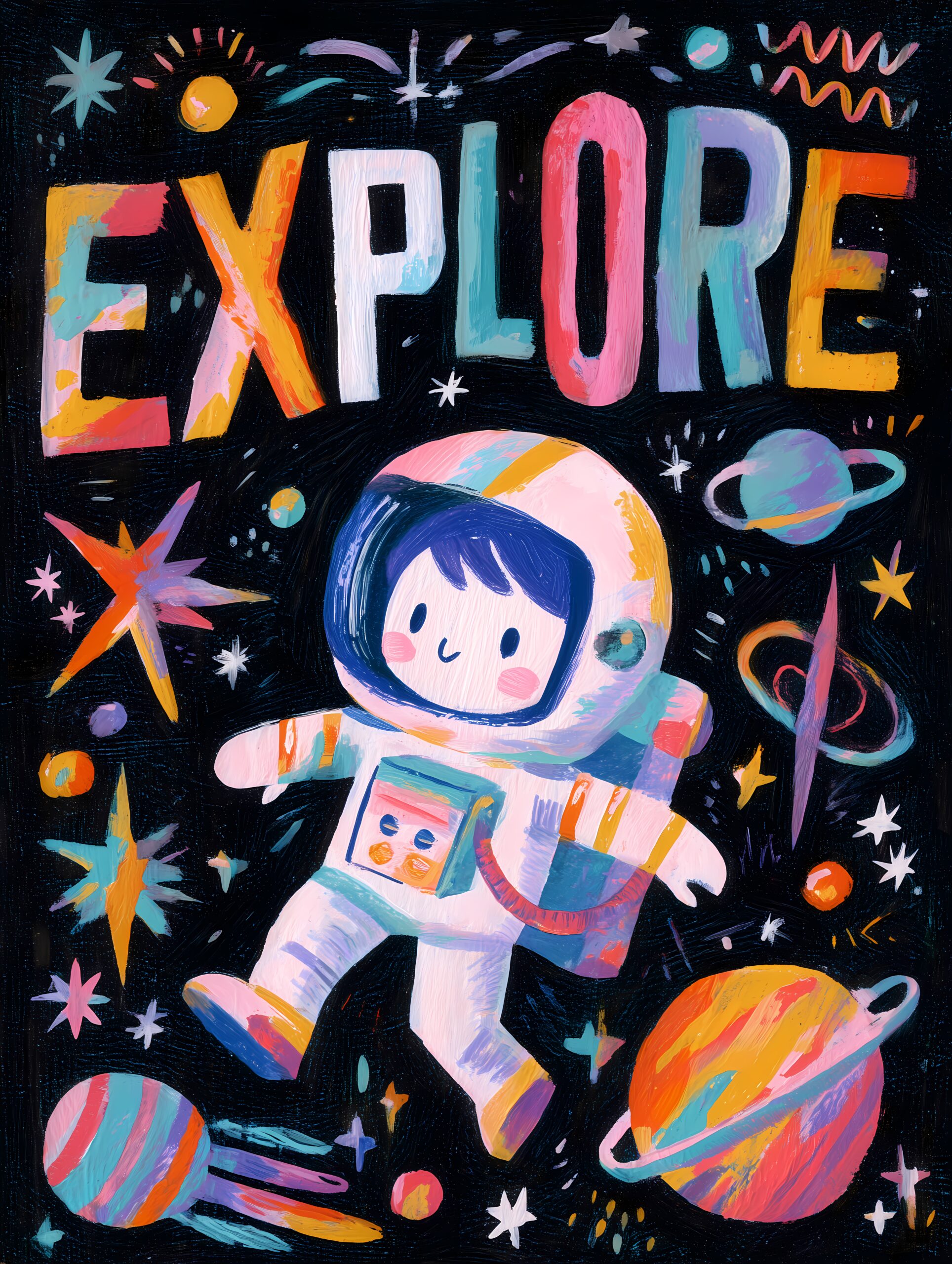 Les tout-petits et leurs parents sont à invités à une séance d’exploration et d’immersion dans les étoiles avec de la peinture fluo ” propre”.
